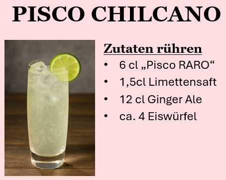 Pisco ist vielseitig geniessbar. Als Klassiker wie Pisco Sour, Chilcano oder Mule. Auch pur entfaltet er seinen unverfälschten Charakter.